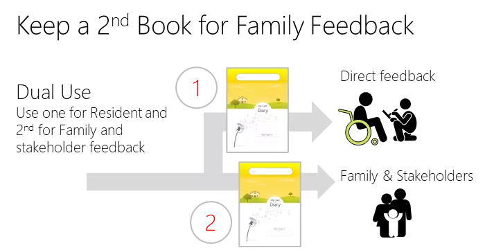 For Family Feedback (Optional) | You can get a second book, kept with the care plan, for family and stakeholder feedback |